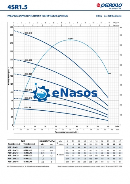 Моноблочні електронасоси Pedrollo серії 4SR рекомендуються для перекачування чистої води з вмістом піску не більше 150 г/м³.
