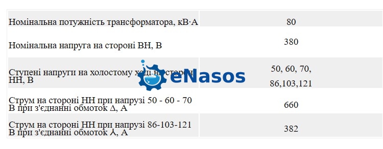 Основні технічні характеристики станції прогріву бетону КТПОБ-80