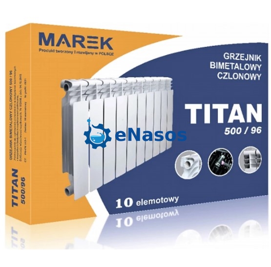 Біметалеві радіатори польського концерну Marek MAREK TITAN 500/96 – це надійні та якісні радіатори, що поєднують у собі надійність сталі та високу тепловіддачу алюмінію. Виконані з глибиною секції 96 мм. При виробництві радіатора використовується осердя зі сталі з збільшеним проходом, що дозволяє застосовувати радіатор у складних умовах експлуатації. Це гарантує безаварійну роботу приладу та значно збільшує термін експлуатації радіатора.