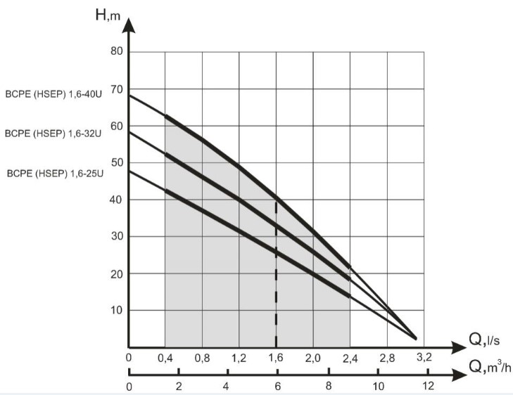 - Оптимальная производительность -1,6 л/с(5,8 м3/ч),