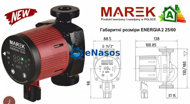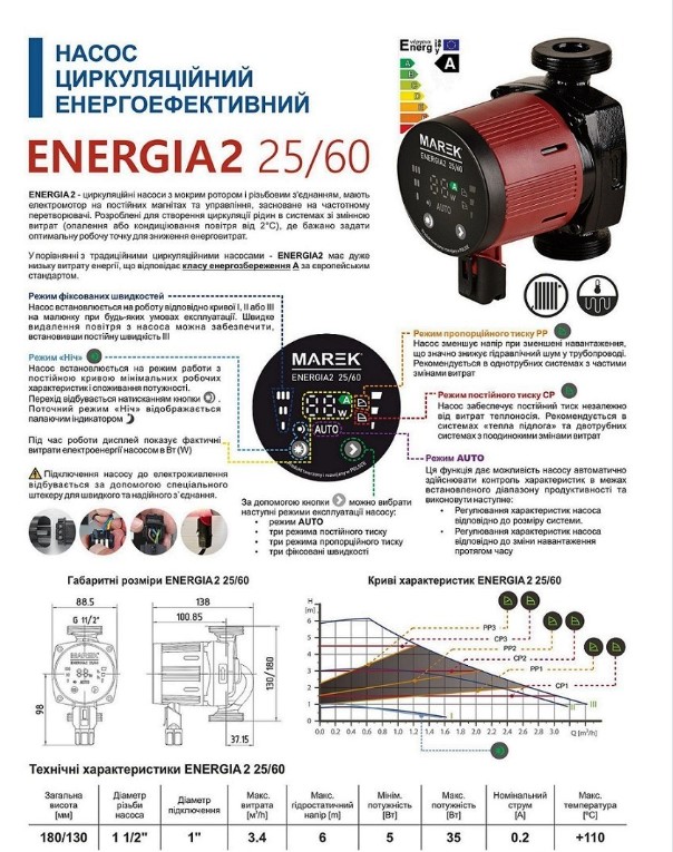 Частотний циркуляційний насос MAREK ENERGIA2 25/60-130