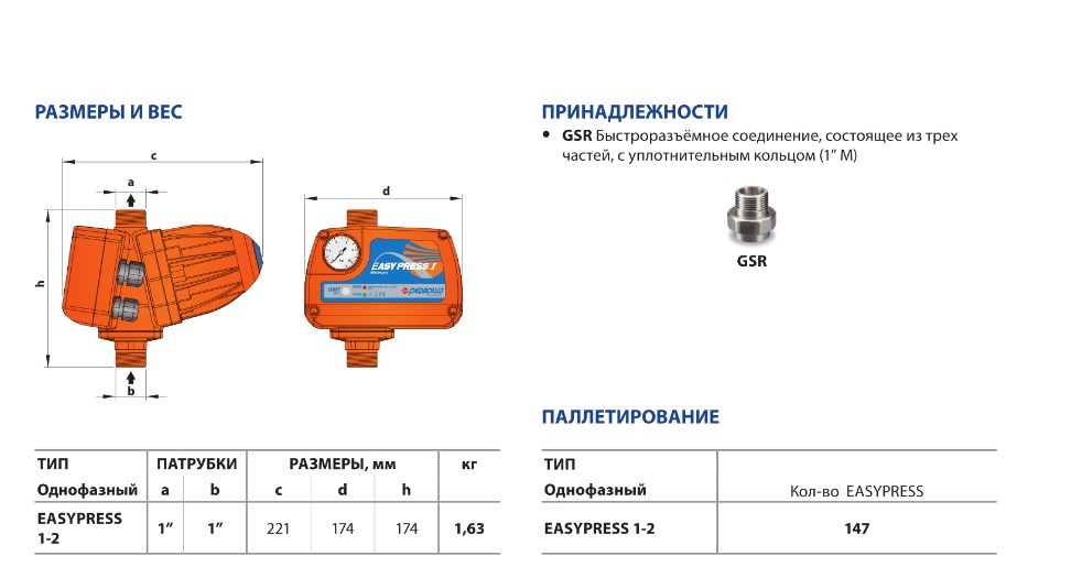 Изделия серии EASYPRESS являются электронными устройствами для включения (при открытии крана) и останова (при закрытии крана) однофазных электронасосов.
