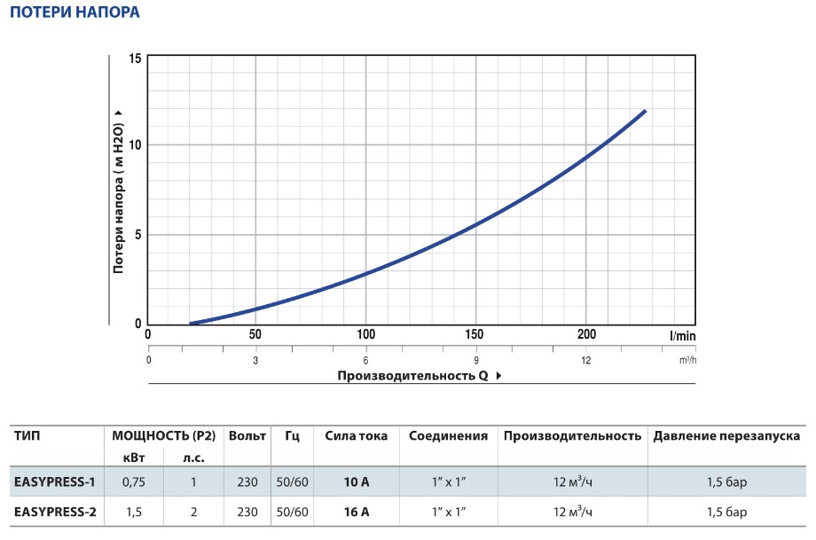 - Версия EASYPRESS-1 с давлением перезапуска 0,8 бар