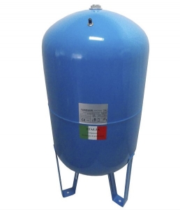 Гидроаккумулятор Watersystem Предназначены для поддержания постоянного давления воды и смягчения гидравлических ударов в бытовых и промышленных установках систем водоснабжения, которые могут привести к серьезным повреждениям в системах с длинным трубопроводом. Материал бака гидроаккумулятора - сталь, материал фланца - оцинкованая сталь с пластиковым вкладышем в месте контакта с водой, материал мембраны - EPDM (пищевая резина), окраска бака - порошковая термоэмаль. Гидроаккумуляторы Watersystem для воды (гидробаки) состоят из металлической колбы-корпуса, резиновой мембраны, фланца, воздушного ниппеля аналогическому автомобильному. Вода, поступающая в расширительный бак (гидроаккуумулятор) под давленим заданным насосом, заполняет мембрану водой, сжимая воздух в пространстве между корпусом и стенками мембраны гидроаккумулятора. При открытии расходного крана, одной из точек водоразбора, воздух выдавливает воду из мембраны, не допуская резкого падения давления в системе водоснабжения. Этим достигается не только функция поддержания давления, но и продлевается срок эксплуатации насоса для воды, так как сокращается количество циклов включения-выключения насоса которые имеют ограниченное количество пусков в час. При выборе такого прибора как расширительный бак (гидроаккумулятор), важно знать, что запас воды под давлением равен примерно одной трети от объема самого бака, т.е. если вы купили гидроаккумулятор 100л, то у вас есть 30л воды в запасе в зависимости от настроек реле давления. Гидроаккумуляторы (мембранные баки) больших объемов приобретают, если в доме часто отключают электричество, или в скважине (колодце) стоит насос большой мощности, чтобы избежать частым пуска наоса для воды.