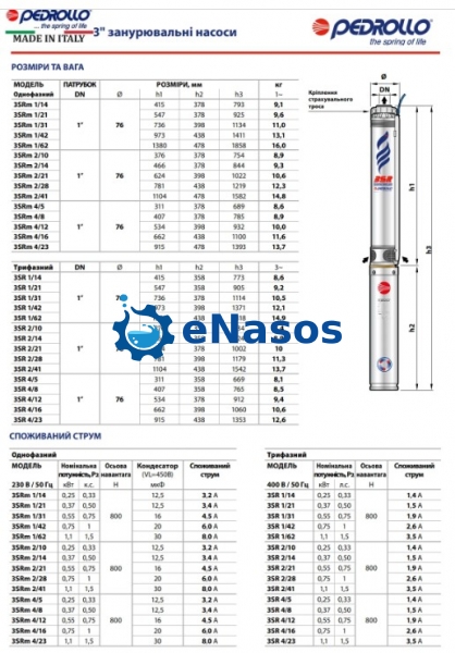 Глибиний насос Pedrollo 3SR 4/23 - PD (380V три фази)