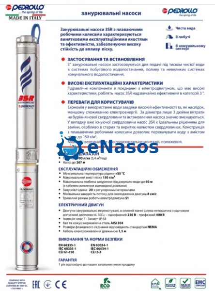 Гідравлічні компоненти в поєднанні з електродвигуном, що має високі характеристики, роблять насос 3SR надзвичайно ефективним в категорії 3 ".