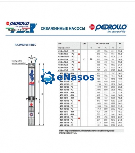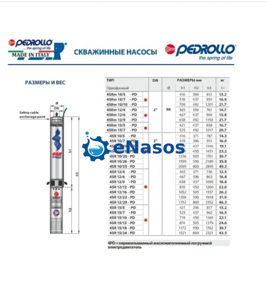 Глибиний насос Pedrollo 4SR 10m/7 - PD (230V одна фаза)