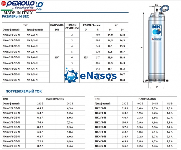 Конструктивні характеристики колодязних насосів Pedrollo серії NK