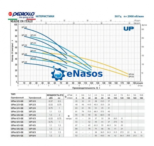Колодязний насос Pedrollo UPm 2/2-GE завдяки високій ефективності і надійності рекомендуються для перекачування чистої води і широко використовуються в побуті, комунальному та сільському господарстві, для організації водопостачання в поєднанні з системами підтримки тиску, а також для поливання садів і городів, підвищення тиску в мережі і т. п.