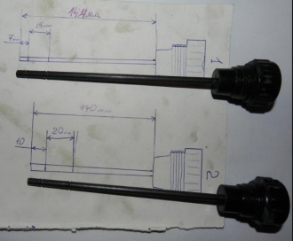 Масляный щуп необходим для измерения уровня масла. Данный маслоизмерительный стержень опускается в трубку, которая крепится к блоку цилиндров. Нижний конец устройства вставляется до упора и соприкасается с маслом, находящимся в картере. После извлечения, по нанесенным на щуп отметкам можно выяснить, какое количество смазывающей жидкости находится в резервуаре.