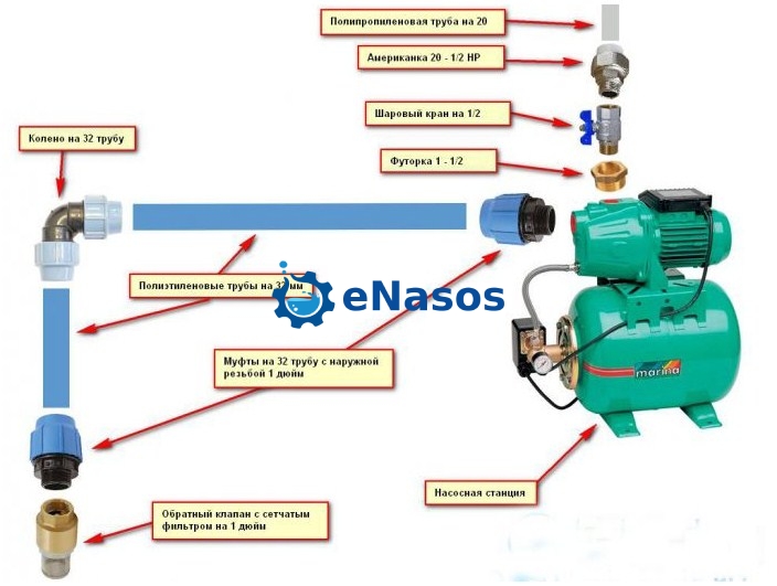 При сооружении системы водоснабжения частного дома каждый хозяин стремится получить стабильный напор воды независимо от количества точек водопотребления. Автоматическая насосная установка нужна для подъёма жидкости с недр гидротехнического сооружения и подачи её в дом.Сегодня в продаже можно найти большой ассортимент насосных приспособлений, отличающихся мощностью, производительностью, принципом действия и местом расположения. Так, поверхностные модели предназначены для монтажа в доме, кессоне или специальной постройке. Они более простые в ремонте и обслуживании, но более шумные. Мотор погружного агрегата устанавливается глубоко в колодце или скважине, а остальная часть оборудования; на поверхности. Работа такого прибора более тихая, но выполнять его обслуживание сложнее. Если для обеспечения водоснабжения дома использовать обычный глубинный насос, то он очень быстро выйдет из строя из-за того, что будет очень много работать. В этом случае установка насосной станции более предпочтительна, поскольку каждое открывание крана для того, чтобы набрать воды в чайник или помыть руки, не будет вызывать запуск насоса. Поскольку каждый прибор рассчитан на определённое количество циклов включения и выключения, это позволит продлить срок службы установки.