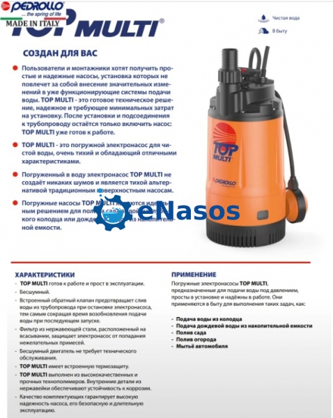 Погружний, дренажний насос Pedrollo TOP MULTI 1