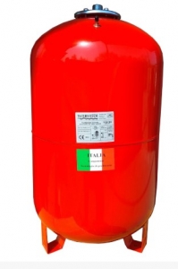 Расширительный бак Watersystem Расширительный бак предназначен для компенсации температурных расширений в бытовых и промышленных системах отопления. Материал бака расширительного бака - сталь, материал фланца - оцинкованая сталь с пластиковым вкладышем в месте контакта с водой, материал мембраны - EPDM, окраска бака - порошковая термоэмаль. Демпфер традиционной системы отопления выполняет сразу несколько функций: 1. вмещает излишек воды, образующийся в результате ее нагрева; 2. восполняет недостаток воды при понижении ее температуры или в случае незначительной утечки; 3. собирает воздух, проникающий в систему водяного отопления; 4. собирает воздух, выделяющийся из нагретой воды. Характеристики расширительного бака Watersystem: материал корпуса и подставки - углеродистая сталь; мембрана - вулканизированная резина EDPM; толщина стенок - не менее 1 мм; максимальное давление - 10 бар; номинальное давление воздуха - 4 bar; диапазон температуры воды - (+1...+100)С;