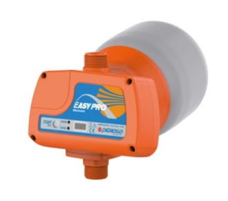EASYPRO® имеет встроенный гидроаккумулятор объёмом 3 л. Величина объёма аккумулируемой жидкости и способность поглощать избыточное давление, присущая разширительным бакам, позволяют применять EASYPRO® в системах, где применение других регуляторов является нецелесообразным. Для обеспечения оптимальных характеристик защиты и аккумулирования жидкости давление воздуха в гидроаккумуляторе, заводская настройка 1,8 бар, может быть легко изменено в соответствии с выбранным давлением включения насоса.