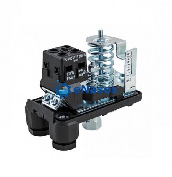 Ці реле тиску використовуються в водяних станціях підвищення тиску.Забезпечують автоматичне вмикання і вимикання електричного насоса, відповідно до налаштованих значень тиску.Електричні контакти: нормально замкнуті, мідні, з покриттям Ag-Ni.Клеми з чотирма болтами М4 і два притискних гвинти, що регулюють тиску 8Х8 мм.Каучукова мембрана NBR з текстильною вставкою (матеріал безпечний для здоров'я PM/5).Гідравічне з'єднання 1⁄4" "мама" виготовлене з оцинкованої сталі.Стандартний клас захисту IP 44.Максимальна температура довкілля: 55 °C.Високостійкі кабельні клеми.