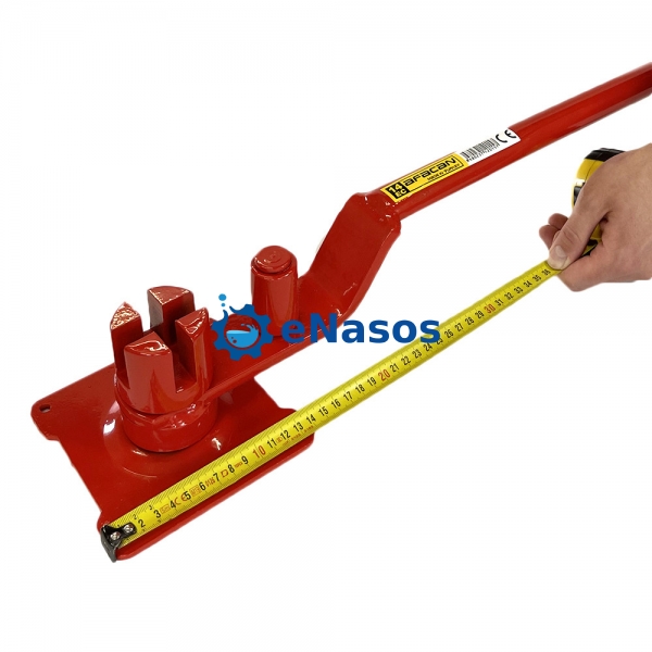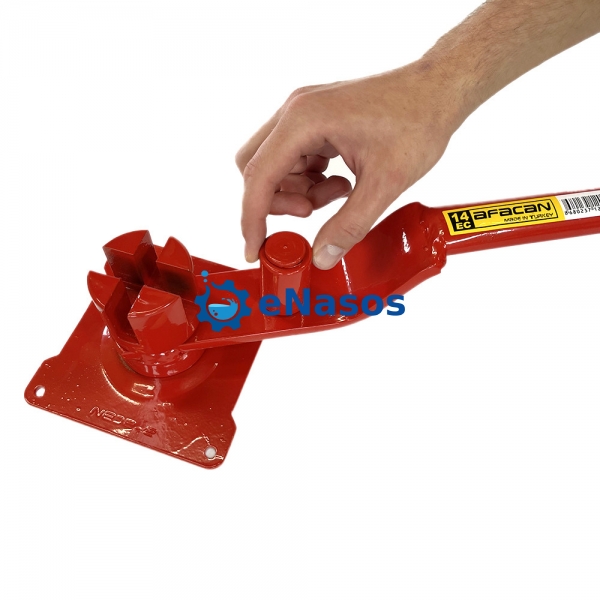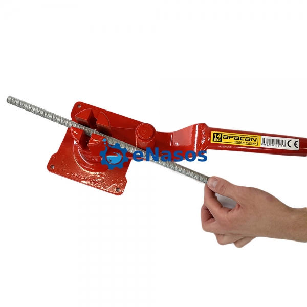 Ручной станок для гибки арматуры AFACAN 14ЕСПредназначений для создания острых углов изгиба из стержней круглой, квадратной арматуры и полосовой стали.Имеет прочное основание и 4 отверстия для его крепления.Вращающийся валец и подшипник позволяют легко сгибать арматурные стержни разного типа и диаметра от 6 мм до 14 мм.Незаменимый инструмент на строительной площадке.Изготовлен из специальной легированной стали.Покрытый порошковой краской.Изгибающие поверхности закалены индукционным методом.Можно использовать как основной, так и вспомогательный.Крепится на любую горизонтальную поверхность по месту обработки арматуры, при необходимости просто демонтируется и переносится на другой объект (место, площадку).Прост и удобен в работе, что не требует специальных знаний и навыков.Ручной станок для гибки арматуры AFACAN 14ЕС отличается невысокой ценой и небольшим весом, по сравнению с механическими станками, не требует подключения к электросети.Характеристика:Перед началом работ станок необходимо прикрепить к твердой неподвижной поверхности саморезами или болтами во все отверстия.• Длина рычага, мм – 870.• Диаметр арматурных стержней – от 6 мм до 14 мм• Крепежная пластина, мм – 140х140• Масса нетто, кг – 5