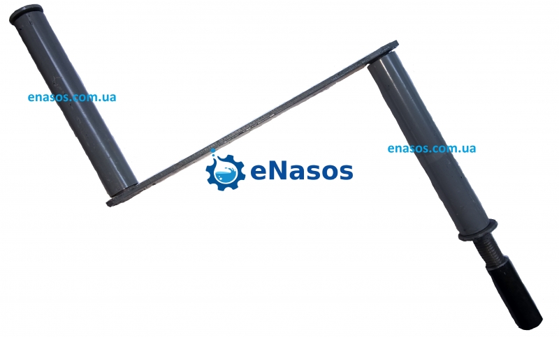 Ручка в виде сварной конструкции из полосы , круга и трубы . Z-образная форма обеспечивает удобное использование сантехнического троса разного диаметра и разной длины. Ручка крепится к тросу с помощью переходника (наконечника). В наконечнике для сантехнического профессионального троса есть внутри с одной стороны нарезенная резьба, в которую вкручивается ручка,а с другой стороны полость для вставки сантехническго троса и его дальнейшей опресовки, что также обеспечивает прочность крепления ручки на тросу